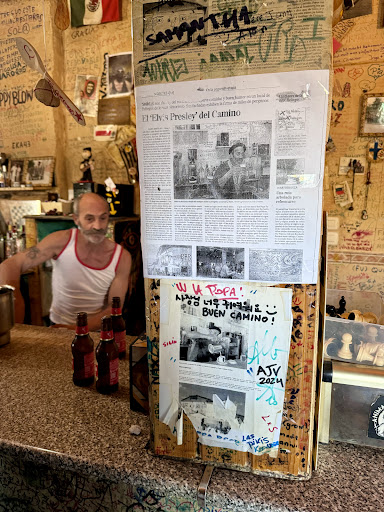 Read moreUna de las noches más memorables de todo mi Camino. La dueña de nuestro albergue, con una generosidad increíble, nos llevó hasta este bar de rock donde conocimos al famoso “Elvis Presley del Camino”. Desde el primer momento la atmósfera fue distinta: las paredes llenas de recuerdos de peregrinos, la música vibrando, y la sensación de que todos éramos parte de una gran familia de viajeros.