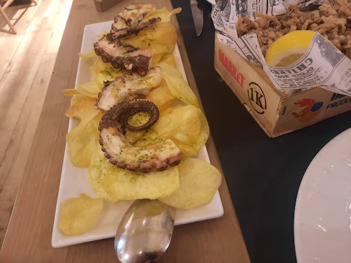 La comida, riquísima y como digo, los platos llegaron sin tardanzas. Tomamos: la ensalada de vieiras y langostinos; la cazuela de pulpo, almejas y gambones; las croquetas de la casa (deliciosas) y de postres: las cañas de crema, helado casero de mandarina y el coulant con helado. Trabajan con producto de calidad y en cocina desde luego, disfrutan con su trabajo, se nota!