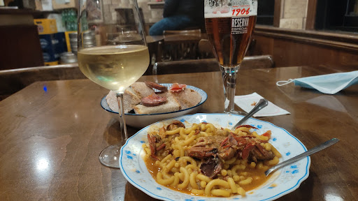 Read moreAmbiente muy animado, tradicional e ideal para tomarse el vino o la caña, con Manolo al frente. Atención a las tapas (veganos abstenerse... entráis en territorio comanche), acompañadas del que quizás sea el pan más rico que se pueda comer en Compostela y alrededores. Recomendable...