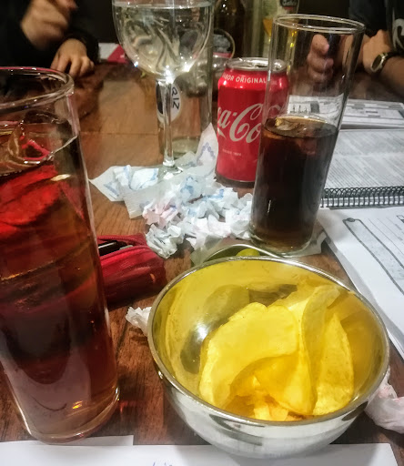 The patatas were fries and the mushrooms with garlic tasted like from the can, so no points concerning that as well.