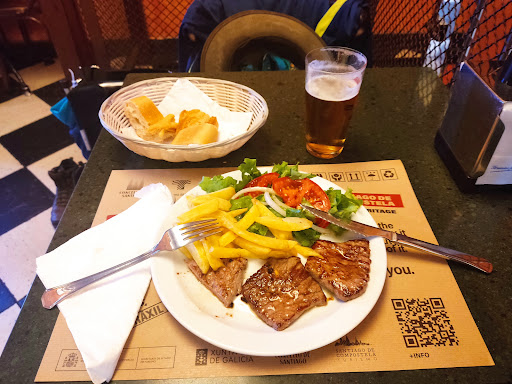 Read moreDepois de fazer O Camiño Inglês, de Ferrol a Santiago de Compostela, decidi rumar a Finisterra por Muxía. No regresso, desembarco em Santiago de Compostela, para mais tarde me encaminhar a Vigo (Guixar). Tenho de avigorar, pensei. Procurei calmamente onde fazê-lo. Escolhi em felicidade, pois o Café D`Lucia ofereceu-me, por 12€, garbanzos, filete de ternera e tiramisu, sem poder faltar a Estrella Galícia. Tudo isto com um sorriso no rosto. Bravo! Voltarei. P.S. Não há foto dos garbanzos. Adivinhem porquê... Estavam uma delícia :)