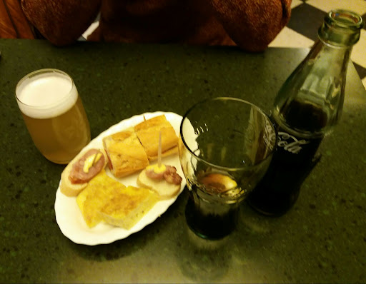 Decidimos ir a tomar algo en este local tras leer las opiniones favorables de otros clientes, lo que hizo que nuestras expectativas fuesen, quizás, demasiado elevadas y nos llevamos un pequeño chasco. Para empezar, la atención nos pareció rápida pero algo escasa de amabilidad, tanto por parte de la camarera que nos tomó nota al llegar (muy seria y bastante seca, ya que ni un "buenas tardes" nos dijo) como por parte del camarero que nos cobró al irnos (sin ni siquiera dar las gracias o decir un simple "hasta luego"). El local en sí parece más acogedor en las fotos de lo que es en realidad; resulta un tanto frío y recuerda, al menos en la zona de la barra, al bar de una estación de autobuses lleno de mesas y con poca intimidad para mantener una conversación privada. Es cierto que acompañan la consumición con varias tapas de cortesía, pero de calidad más bien mediocre; en Compostela hay unos cuantos locales que ponen mejores tapas y más generosas que aquí (por ejemplo el San Clemente, cerca de la catedral, o el Caminante, en San Lázaro). Como puntos a favor destacaremos que los precios son asequibles (3,80€ por un refresco y una clara) y que admiten diversas formas de pago, como por ejemplo...