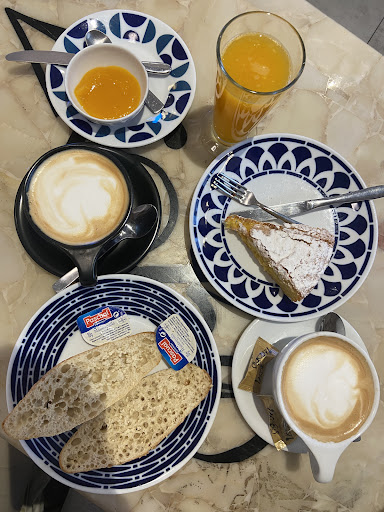 Good semi-hot chocolate, coffee and the Galician almond cake. Prices are reasonable, 7€ for hot chocolate, coffee, almond cake...