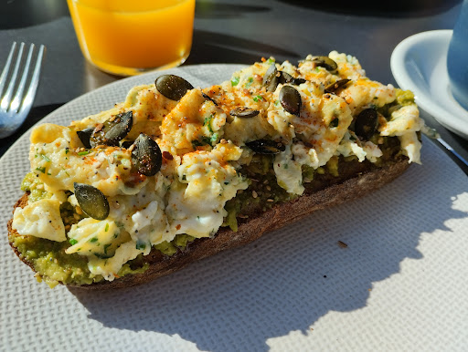 En esta hora que estuve sentado, tuve tiempo más que suficiente para ver cómo le servía la comida a las mesas que estaban a mí alrededor. La comida tenía buena pinta, aunque los precios son elevados para las cantidades que ponen. He visto en otras reseñas que "lo hacen para que no sobren cosas y no tirarlas", pero ya os aseguro que en esos platos no os va a sobrar comida. Además, las contestaciones a las reseñas negativas de otras personas son de persona maleducada, solo hace falta buscar un poco para encontrarlas. Dicho esto, repito que los precios están muy por encima de lo habitual, incluso para los estándares "eco-friendly" (un café de 1,60 para arriba, y una (1) única tostada de 5 euros para arriba). Tampoco es todo malo: el local es bonito y el ambiente...