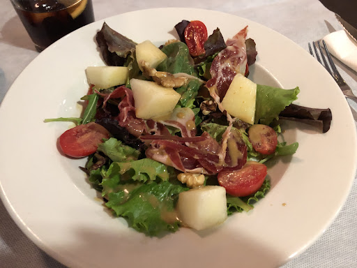 When we came here and we were checking the menu on the table, some other people came and stole our table with the waiter taking it. When we asked what happened and that we were there first, he said he thought we were together with them and he suggested another table (to be cleaned up for us). He told us to wait for him to prepare it. Meanwhile somebody else came and took one of the tables so we went to sit on the last free but dirty table. We were waiting for a long time for the mentioned waiter to come and in the end we needed to call for him to attend us. We chose menu del dia (12.5€). The food was okay, but the service amazingly slow. It took us 1.5h to finish the visit. And there was a problem with desert. We asked what was included and were told that we could order tarta de queso. Another waiter came and said it wasn't included. And then the first one finally came with it saying sometimes it's included, sometimes not but this time it is.