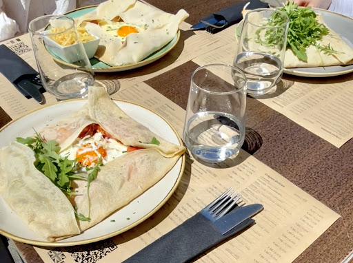 Read moreA wonderful restaurant which visitors should definitely seek out (the interior is inside and up a set of stairs, so we had to look hard for it the first time), just across the plaza from the cathedral shop. The food and drink are amazing--we've ordered something different every time, both savory and sweet crepes, and they've all been not only delicious but so huge we had to take half of them home for another meal later! And their homemade drinks are memorable--real brewed hot chocolate, iced sangria with either red wine or white wine, and more. A special shout-out to our server Andres, who was enormously helpful not only on our first visit, but on subsequent visits when he wasn't even assigned to us :) This place quickly became a favorite with us (we also had a 3-year-old in a stroller with us, which they accommodated effortlessly), and we'll return every time we visit Santiago. Prices...