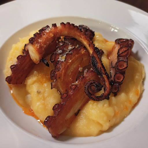 I had a light dinner; grilled octopus Asturian Island style - the best Pulpo I had for the past week of being on the Camino Way in Galicia. It had the smoky aroma of a wood grill, and even grilled was very tender. Served over mashed potatoes (a nice twist on traditional boiled potatoes with paprika). Then I tried the roasted eggplant. Nothing like I had ever tasted. They must have been peeled and then cut in spears. I couldn’t discern any charring from the roasting. Very tender and with a sweet sticky alarmist like maple syrup but more subtle like honey covering them along with lemon juice perhaps? Then topped with green options and pepper slices - the spicey hot with the sweet was good. I should have asked about the...