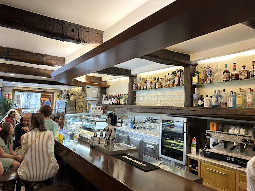 Los precios aquí son un poco altos, pero es una calle muy concurrida, así que puede que en otros sitios sea igual. Pedí pulpo a la gallega y solomillo de ternera a la brasa, dos Coca colas zero y un café. El pulpo estaba bien, aunque no es el mejor que he comido, entre otras cosas porque le echan sal gruesa y a veces masticas granos de sal, haciendo que en ocasiones de la sensación de que está demasiado salado. El precio era de 18€. El solomillo fue un poco decepcionante, lo pedí al punto, pero tenía una parte, pequeña, que estaba cruda, y en general estaba un poco seco. Pusieron en la mesa una salsa y sal para que echase a mi gusto, pero la salsa era un tanto picante y enmascaraba el sabor de la carne, y en cuanto a sal, nuevamente usan sal gruesa, y aunque el solomillo estaba bien, las patatas que lo acompañaban estaban saladas. El precio era de 24€. Las dos Coca colas zero fueron 5,6€, 2,8€ cada una. Para acompañar pusieron una rodaja de pan por la que cobraron 2,4€... Ya sé que se supone que es el servicio, pero solo una rodaja de pan y te pongan 2,4€, queda feo. El café estaba bueno, creo recordar que era Saimaza. Un precio normal, 1,5€. Cuando entré al local había gente, y más fue llegando, algo normal teniendo en cuenta que está localizado en una calle concurrida. He de destacar algo que no me pareció muy correcto, la carne la hacían a la brasa, pero fuera de la cocina, donde estaban los camareros, veía como la cocinera salía, cogía la carne que ya estaba lista, y se la llebava a la cocina sin ponerla en un plato o bandeja, sino con unas pinzas, además de que los camareros también miraban la carne, y en una ocasión vi a uno de ellos moviendo un trozo para ver si estaba listo. El servicio estuvo muy atento, había gente en el establecimiento, pero tenían suficiente personal...