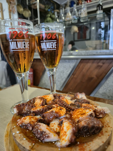 ME ROBARON EL BOLSO. Me gustaría que a nadie le pasara lo que a mí y prestárais atención a si se sientan a vuestro lado un chico español, un chico sudamericano y una chica sudamericana. El modus operandi es el siguiente: se sientan los dos chicos y ella da un vuelta de reconocimiento. Luego se sienta con ellos (ya nos pareció raro el comportamiento de ella porque se sentó allí pero dudamos si tenía relación con ellos incluso). Se piden sus pulpos su carne y al pagar se ponen los dos a cuchichear sobre cómo hacen para pagar y él dice que la invita, acto seguido se dirige a ella que está sentada al lado de quien quiere robar (en este caso yo) y le da un beso y en un gesto de cariño me cogió el bolso él y se fue con él en la mano. La suerte que tuve fue que me dí cuenta ipsofacto y salí corriendo del bar a tiempo de ver cómo se alejaban y antes de cruzar la esquina le da el bolso a ella, que casualmente no lleva bolso ninguno sólo el mío. Cuando los sorprendo me dicen que es por error que se lo llevaron mientras ella carga con un bolso que no es suyo. Una auténtica vergüenza. No es la primera vez que roban allí porque al ser bancos corridos de madera el único sitio para dejar el bolso es el banco y así roban fácilmente. Por favor, tened mucho cuidado y prestad atención a los detalles porque yo tuve suerte pero son ladrones profesionales y repito por el modus operandi se nota que han robado allí más de una vez. Os agradecería que le dierais a me gusta para que la gente lo lea y no le pase a nadie más. Dos chicos de cuarenta y pocos años (uno español y otro sudamericano) y una sudamericana de treinta y largos. La comida fenomenal y el servicio también. Una pena que se empañara por esto. Espero que el restaurante tome medidas dentro de lo que esté en sus manos porque les dije exactamente...
