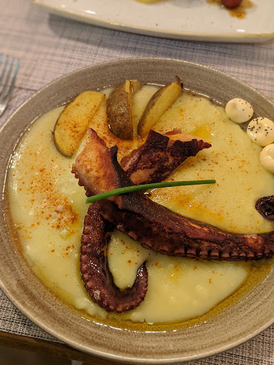 CONCLUSIÓN: En general muy buena materia prima y buena elaboración. Recomendable pedir pescados. En la carne flojean algo. Los postres tienen buena intención pero fallan metiéndole acompañamientos de baja calidad o que no encajan como las bola de helado que ponen en cualquier restaurante de carretera. Es mejor trabajar un buen acompañamiento que esté a la altura del propio postre principal, ya que tienen una base muy buena y así potenciarlos, no conseguir lo contrario. Y el precio me pareció más alto de lo que deberían. Sobre todo en el pan, las croquetas, la empanada, los postres y la bebida. Un lugar con muy buena música, volumen adecuado y aunque las mesas estén cerca de las colindantes, hay una privacidad bastante cómoda. Si mejoran los precios en estos detalles, volveremos. En general,...