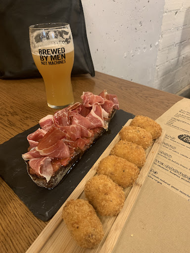 Read moreGreat bar and experience 7-8 minutes from the cathedral. A selection of local and international (US) beers, to slack the thirst of any weary pilgrim. The lady at the bar was fantastic, giving us a sample of any and all beers we asked about. I sat down with my IPA (from Lugo), and was immediately gifted a delicious chicken McNugget in a bun tapas portion! We then ordered a couple of other snack portions…tostas with jamon and some croquettes…all awesome. The lady said the hamburgers there are to die for, so bear that in mind! But as we’re from New Jersey, we stuck with the jamon and more local stuff! So…a wonderful stop for us in the early evening, that I...