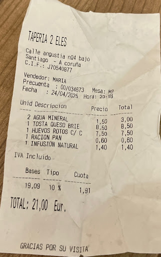 Read moreWe loved this little cafe. Weary from walking the Camino and working hard to talk to people in their native tongue, We were greeted by a lovely bi-lingual (probably tri-lingual) waiter who coached us in avoiding ordering way too much food😉. We would love to see more vegetables served with a meal, but you can't beat the wine, beer, and agua con gas...