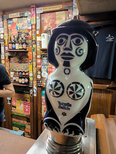 Neste local poñen música moi variada e de distintas épocas, dende Rafaela Carrá, a La MODA, pasando por Shakira e Love of Lesbian. Últimamente para meu gusto demasiado regetón e nada de rock ou indie bailable. En hora punta quédase pequeno o local, pero o ambiente é moi bo, a xente baila e todo o mundo canta(dá igual se é unha canción de Rosalía ou de Queen) fantástico!! É certo que a maioría son universitari@s, pero realmente hai unha gran variedade de edades e estilos nun ambiente de respeto e tolerancia onde ninguén está fora de lugar. É obligatoria a consumición mínima e as baratas non o son tanto. Tal vez se apuran demasiado a retirar as copas cando aínda te queda un trago. Como en todos os pubs, hai que ter ollo coas cazadoras. Tanto o porteiro como o personal da barra é xente...