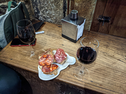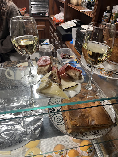 Read moreFui estudiante en Santiago y no me faltaron días de fiesta. Precisamente una noche lluviosa de estas, en pleno invierno, estaba con un colega ávidos de fiesta por esta zona y decidimos pasar a este local. Nosotros pensábamos que era una simple tienda de fiambres que abría hasta tarde pero cuando entramos descubrimos lo que realmente deseábamos sin saberlo. Detrás del mostrador de fiambres había un pequeño pasillo que conducía a una pequeña sala calentada por una lareira y apenas 4 mesas. También habían papeles escritos por las paredes, seguramente dejados por clientes del pasado, pero ahora ya no los hay (molaba que volviera esa costumbre, le daba un encanto único). Desde esa experiencia volvimos bastantes veces sólo con la excusa de "hacernos la carta de vinos completa"... No nos engañemos, debimos hacerla ya unas cuantas veces, cómo resistirse a esos cortes de queso y jamoncito.