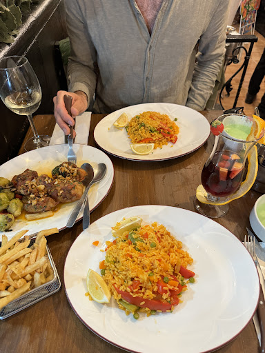 Food was not good. Meson chicken was unprofessionally cut, full of small, sharp bone shards, which made it difficult to eat. Banana split didn't have fried banana, just banana slices. Vegetarian paella was just a base of paella with meat removed. Chicken breast was dry and tasteless. They don't have a chef?