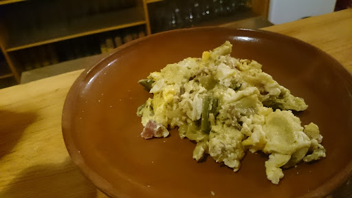 Read moreDe lo peor que me e encontrado. Para empezar pedimos la bebida que fue vino con casera y la sacaron empezada y cada botella a la mitad. Pedimos menú, de primero unas migas y nos sacon un plato que era pan desmigajado que lo habian pasado por la sarten para dorarlo un poco pero estaba helado, el chorizo mas duro que las piedras, la panceta parecia que la habian dibujado en un carton y lo echaron a las migas sin sabor, los ajos crudos en fin que lo unico bueno de ese plato era que te echaban 2 trocitos de melon. De segundo plato solomillo muy salado y si costaba masticarlo imaginate tragarlo, con una guarnicion de patatas que la habian echo de por lo menos 1 semana. En fin fatal. El postre eran una natillas de sobre que estaban pasables. No volvere a este sitio, le pongo una estrella por que...