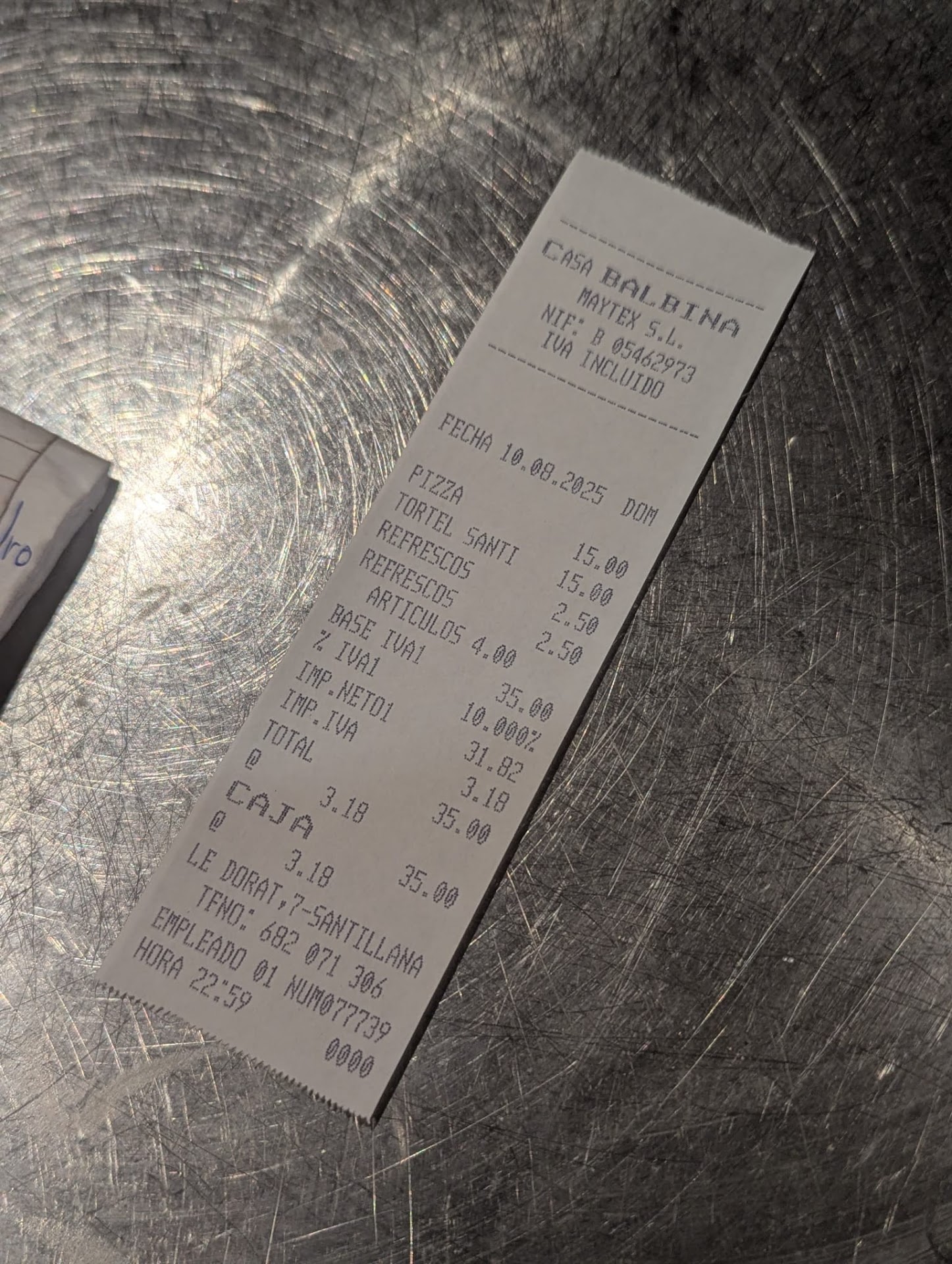 Cuando mencioné que es obligatorio avisar, el dueño respondió que “eso es mentira” y que seguirá sin informar “porque no le da la gana”, con una actitud muy chulesca. Además, insinuó “llegar a un acuerdo” si le dábamos algo de efectivo, y ante nuestra negativa (no teníamos suficiente) llegó a preguntar a mi pareja, señalando su bolso, si no tenía dinero ahí. Fue una situación muy incómoda, informal e intimidante.