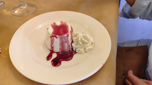 En dessert, j’ai eu une sorte de petit flan au fromage nappé de coulis de fruits rouges. Très bien fait, pas trop sucré, parfait pour terminer le repas.