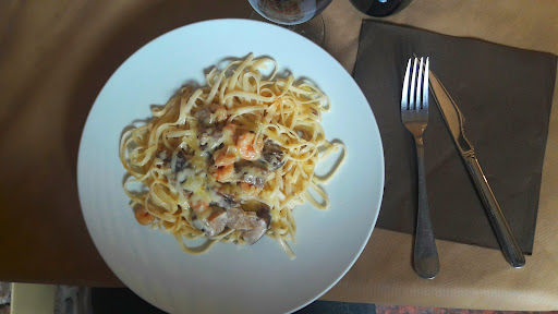 En entrée, j’ai pris des tagliatelles à la crème, champignons et crevettes. J’ai été surpris de trouver ce type de préparation en entrée, car cela pourrait très bien être un plat principal. C’était bien cuisiné, gourmand et consistant.