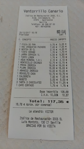 Be careful with this place, they charged us almost 10€ more than what we actually ordered. And the final bill was a little under 30€ for only 2 plates and two cola. The plates was salmorejo and egg with fries and ham. And they bring you bread you have to pay for witout even ordering. They also tried to double down on one of the plates witout even ordering it. The food quality was also rather bad, i had to break off my visit to italica because my stomac acted up because of the las weeks store bought bottle of salmorejo from Mercadona. Ive lived in Sevilla for almost 10 years and this place is among the worst ones i have ever visited up untill today and would reccomend the gas station across the street instead of this place. I really regret not checking the...