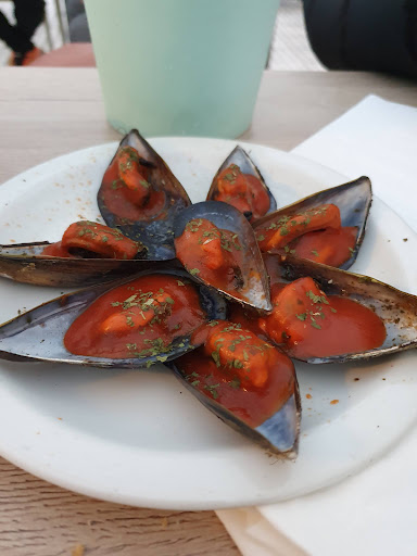 We came to this place here once, mostly because they had Percebes (goose neck barnacle, goose barnacle or leaf barnacle) on the menu. Ordered a plate of these, some mussels with tomato sauce and fried calamares. White wine with that.