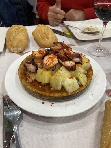 Pulpo: lo primero que eran patatas con pulpo y el pulpo…… más duro que el martillo de Thor!!!! Y la patata parecían bloques de las pirámides. Egipcios, no busquéis más que los tienen aquí todos