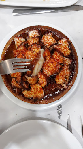 This is one of many smaller restaurants tucked away on a street that can get quite lively at night time but I came by for a late lunch and was fortunate to get a seat outside. It was lovely to try the scallops (zamburina a la plancha) and the Galician Octopus (pulpo a la galega), although initially wanting to try the squid but they only had calamari that day. The young gentleman was very helpful with the menu as I navigated both the menu and read through Google reviews/photos. It was a quaint spot with both indoor and outdoor shaded dining. What I appreciated is that while other restaurants/bars were closing, this restaurant continued to welcome customers despite the schedule going over their operating times (other venues usually turned people away as kitchen was closing between lunch and dinner). Also they take credit card which was helpful as other venues may have preferred cash only to keep costs down but this establishment maintained...