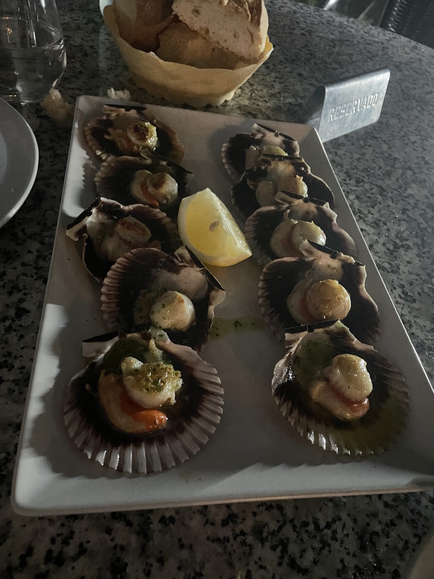 We tried almost all of the signature dishes on the menu, starting with the tomato burrata salad (trust me, you won’t taste tomatoes like this anywhere else, they’re unforgettable in Galicia!). We also had the seafood rice and the octopus, both of which were exceptional and other seafood dishes.