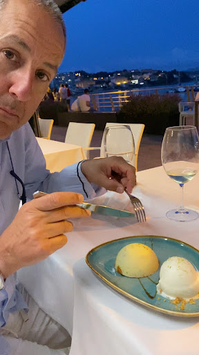 Read moreNo lo recomiendo. Fui un incauto. Caro, pocas cantidades y de calidad deja que desear, salvo los postres que eran aceptables. Pero si quiero cenar dulces me voy a una buena confitería y me pongo morado de cosas mejores y más baratas. Comida como en cualquier restaurante pero aquí a precio muy elevado, ¿quizás porque simplemente tienes un paseo con el puerto delante?. ¡Como si eso fuera algo exclusivo en Galicia!. Primer plato unas almejas que tenían buen tamaño pero estaban un poco duras para mi gusto y eran pocas. En comparación con las que nos comimos en Santiago de Carril o en Pontevedra durante las vacaciones, que fueron más cantidad, mejores y más baratas, pues en fin que me sabe a estafa. Pedimos merluza que estaba bien, pero el Coruxo fue un chiste, un pequeño lomo de no mucho más de 100 gramos a 35 €, una estafa. Encima la salsa ni llevaba albariño ni nada. Insípida a más no poder. Los postres aceptables, pero como digo, uno va a un restaurante por los platos principales. Reservamos mesa en la terraza cubierta, y un perro, que estaba oculto debajo de una mesa y que no vimos cuando llegamos, se puso a ladrar como un loco. Me encantan los perros pero si un local admite perros, digo yo que debería ponerlo bien claro en la página web, y por supuesto no hacía mención por ningún lado. Me queje como es lógico y la camarera diciéndome que el perro no ladraba. Vamos, que nos estaba llamando mentirosos a la cara. Afortunadamente el perro ladró poco más pero si quieres una conversación tranquila o de negocios, y se pone a ladrar un perro sin parar en la mesa de al lado sin previo aviso, ni notificación alguna en forma de cartel, oral o en la web, es para pedir hoja de reclamaciones porque...