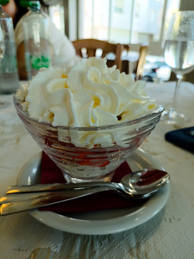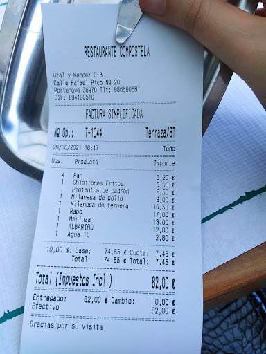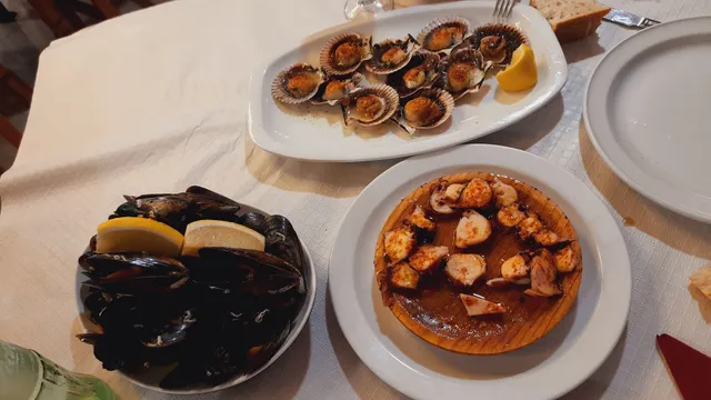 Vamos a lo que nos interesa que es la comida. Pedimos como entrantes unas rabas y unos pimientos de padrón en plan lo que tienen todos los restaurantes de la zona, esto bien rico después como plato principal pedimos un rape y una merluza que estaban muy buenos y mi hermana y yo tuvimos un impulso de básicas de esto que llevas 2 días con tus padres y necesitas algo que no sea pescado o marisco y pedimos un filete con patatas que malo malo no estaba pero bueno nada destacable (que a ver es un filete con patatas es muy difícil que esté malo).