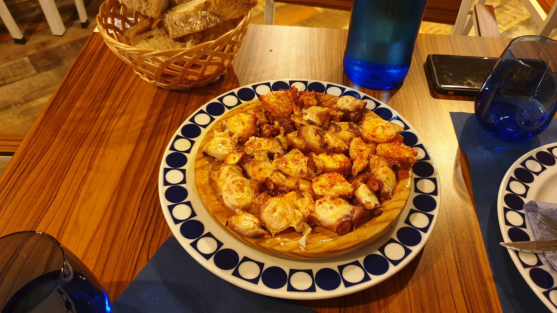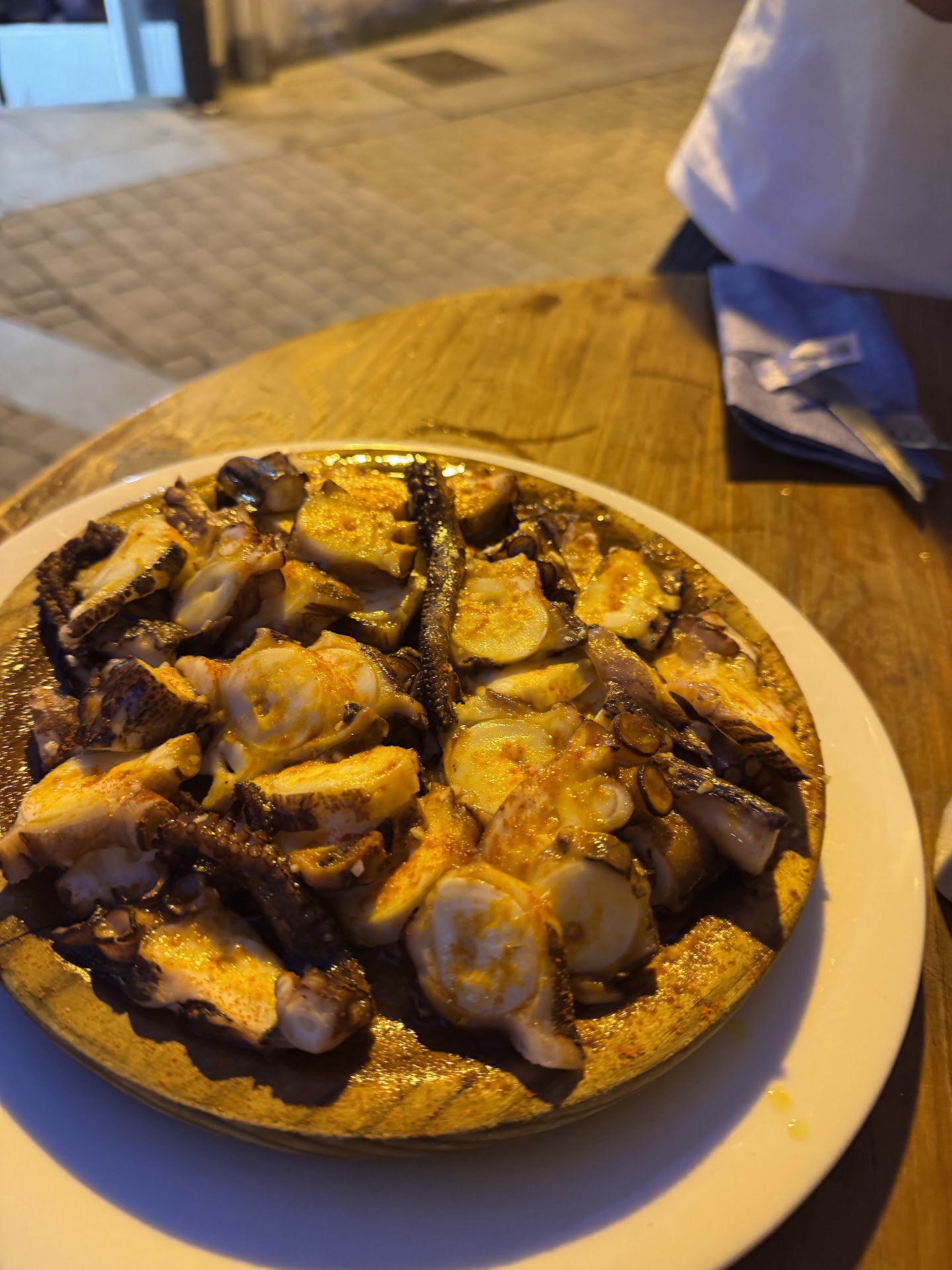 El pulpo a feira: el mejor que hemos comido nunca. Sin exagerar. No llevaba patata, así que la ración era solo pulpo, generosa y brutalmente buena. Blandito como mantequilla, con ese punto perfecto de sabor. Es verdad que no es barato, pero lo vale.