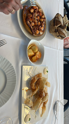 Read moreHabía escuchado buenos comentarios y me decidí a probar. Nada más entrar te das cuenta de que no es simplemente un restaurante a pie de playa para temporada. Su distribución, orden y decoración denotan la mano profesional que adapta la funcionalidad a la comodidad del cliente. Atendió un señor muy educado y sirvió un vermout como hacía tiempo que no lo veía servir en barra. Me decidí a cenar y me dejé aconsejar. Con las vistas de un vivero con Centollos me recomendó la crema de calabaza...algo espectacular servida en un cuenco con tapa para no perder el calor. Muy bien. El segundo fue carne. Entrecot, pues soy de los que opino que la primera experiencia en un restaurante debe evitar las especialidades. Gran categoría, sin esperas. Atendido por una joven camarera que demostró una educación inusual en estos tiempos. Muy satisfecho del servicio. La carne buena con una cama de tetilla, lo justo. Sobresaliente. No tomé postres pero eran muy sugerentes. Un te americano y un Bourbon. Muy bien en general, muy recomendable y un precio muy razonable. Se me olvida reseñar la 1/2 botella de vino tinto recomendado. Volveré acompañado a la hora...