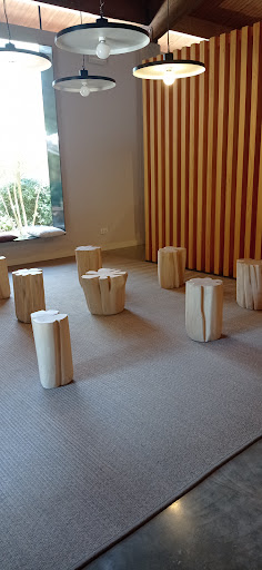 Una terraza situada, como la bodega, en un pinar, un lugar agradable para comer si no fuera por las moscas y alguna avispa insistente. No hay lugar para comer en interior. La oferta son distintos platos que van muy bien para compartir. Aceptables. Realmente está enfocado a la cata de distintos vinos de entre 8 y 30 € la copa (no hay otras elecciones), que puedes acompañar con estos platos, en vez de ser al revés. Lugar a evitar si no quieres gastar un...