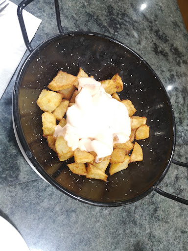 Read moreEl bar lleno hasta los topes con una persona para atender la barra y la cocina, preguntamos por algo para comer y no tiene nada más que fritos, croquetas, patatas y calamares. No me fío, ya que, la persona que nos atiende es de origen oriental y pienso que será congelado todo. Hay una gran pantalla de televisión y el fútbol a todo trapo. La verdad corre mucho y se lo curra pero no es el sitio de tapas que he leído en las...