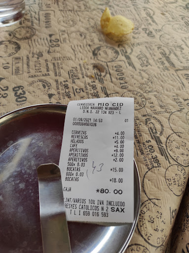 No sé cómo Cervecería Mío Cid sigue abierta. Desde el momento en que entras, el lugar da sensación de dejadez total. Los precios son un insulto: raciones mínimas de queso frito, champiñones y otros aperitivos que parecen hechos más para engañar al cliente que para alimentar. Por lo que pagas, esperas calidad y cantidad, pero aquí ni lo uno ni lo otro.