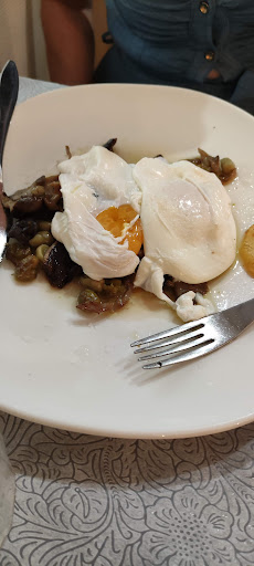 Para comer recomendaría pedir un picoteo variado, tienen opción de media ración o entera, las medias raciones son generosas y más que suficientes para 2 personas. Con unos 4-5 entrantes (medias raciones) y un principal te quedas más que satisfecho. De todos los platos probados recomiendo en especial: Huevos rotos El Cura, berenjenas fritas con miel de caña, cazuelita de gambas, ensaladilla rusa y por último las gyozas... ¡Qué espectáculo!