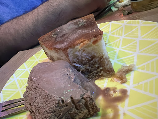Me parece in aceptable lo que nos hicieron… Fuimos a cenar, y pedimos muchísima comida la cual estaba buena. Lo que nos decepcionó fue que a las 12 aproximadamente ( se hizo muy tarde ya que ellos tardaron ) nos dijeron que la barra se había cerrado y si queríamos algo más de bebida la pidiésemos ya (si, no me refiero a alcohol si no también a agua). Quitando que eso nos dejó bastantes sorprendidos y eso que aún no habíamos ni pedido el postre. Nos habían recomendado la tarta de queso unos amigos que venían con nosotros a cenar y visto que la vimos por instagram decidimos probarla. Nuestra sorpresa vino cuando fue totalmente diferente a los que vendían en carta y en publicidad. Era un bizcocho de mantequilla que sabía a grasa y estaba francamente asqueroso. Pedimos explicaciones y nos dijeron que habían cambiado de cocinero, y al preguntar que que queso habían usado nos dice que feta … ese bizcocho no llevaba ni un gramo de queso. Seguramente se quedarían sin tarta de queso y nos ofrecieron eso. A 7€ la porción. El problema vino que recientemente vi en instagram que volvieron a tener la tarta de queso que promocionan… Pongo fotos de lo que nos dieron a nosotros, y lo...