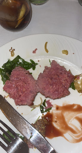 We ordered a menu for dinner. The starter was respectable, but when we came to the main course it got horrible. I ordered a simple burger, and got a burger with raw meat and no burger bun. I asked the waitress for a bread, and she came out with a bread that wasn’t even finished. It was hard like a shell on the outside, hollow and just doughy in the middle. I complained to the waitress and she said it was supposed to be like that. Both the burger and the bread.