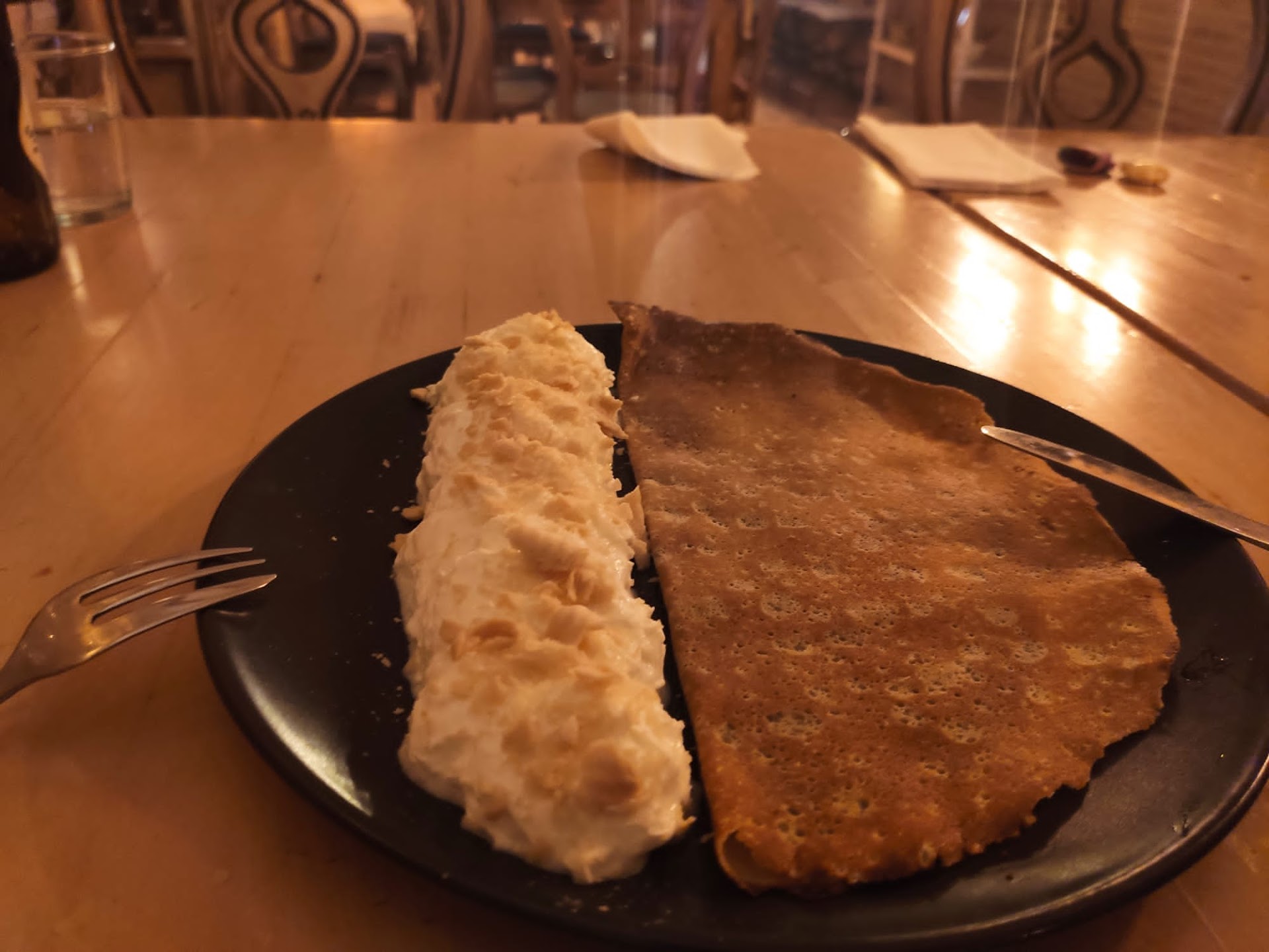 Fuimos mi pareja y yo para una cena y salimos encantados. Una comida insuperable y un ambiente muy tranquilo El foie perfectamente aderezado, sal y pimienta, pero inmejorable, muchas veces lo "simple" bien ejecutado es loque mejor funciona, y la reducción de violeta solo sumaba un sabor más delicioso todavía. El pulpo a la brasa también estupendo, crujiente del fuego y tierno del punto, digno de la mejor casa gallega. Sobre el solomillo tendréis que creer nuestra palabra porque no nos dio tiempo ni a hacer foto, según llegó la pinta que tenía y lo bien que olía no nos dio oportunidad a no atacar en ese mismo instante. El sitio es encantador por la noche, tranquilo y muy acogedor, perfecto para una cita romántica. Recomendable 100%