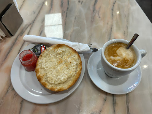 Read moreUna pena que un sitio bien localizado, que para desayunar está bien y las chicas que atienden son majas y trabajadoras, tengan ahí a una señora morena de un malhumor constante (5 días fuimos a desayunar) que suele estar en la cocina, y que entendemos debe ser la dueña. Todos los días además hemos pagado 5,60 por dos desayunos, y hoy se conoce que por ser Sábado son 6,60 y no es por el euro, es por las formas, antes de tener el desayuno te dice que pagues. Una pena, les salva la localización y las muchachas que suelen tener que...