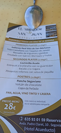 Read moreFuimos seis personas sin reserva, nos pusieron en una terraza de la entrada al restaurante, nos atendieron rápido, pedimos menú del día, tengo que decir que aunque hacia mucho calor alguno pidió judiones de la granja, estaba espectacular y a una temperatura apropiada , yo pedí una ensalada con salmón y fruta, que estaba muy fresca y agradable, después la mayoría pedimos el típico cochinillo, con su costra exterior y la carne del interior muy jugosa, aunque a mí me gustaba un poco más hecha, el chuletón, estaba muy seco, costaba comerlo, de postre, el típico postre ponche segoviano , solo estaba pasable, lo he comido mucho más agradable en otros locales. El camarero al principio empezó la atención con ganas y terminó que teníamos que estar pendiente de él para pedirle tanto el postre, bebida y cuenta. Nos invitó a una copita de licor. Recomiendo el sitio, aunque está un poquito separado del centro, precio aceptable para ser en...