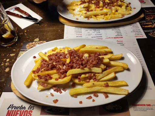 Read moreEn primer lugar, no funciona la aplicación ClubBy, de la que se rigen todos los fosters y otros restaurantes del grupo. En este Fosters alegan que no tienen pensado activarla porque tendrían que cambiar las pistolas de escaneo. Mentira. Lo que no quieren es poder ofrecer los descuentos que consigues con la aplicación. En segundo lugar, las bacon cheese fries que nos dieron eran más bien "salsa ranchera con algo de patatas", creo que se gastaron 1 litro de salsa por lo menos, quizás para disimular la poca cantidad de patatas que había. En tercer lugar, cero empatía con los clientes que estuvimos aguantando gentuza adolescente, gritando, tirándose pedos, arrojando comida y preparando un escándalo absoluto. La camarera totalmente saturada aguantando tb a estos demonios. Cualquier otro restaurante les habría echado sin contemplaciones. En cuarto lugar, las hamburguesas cada vez más pequeñas, esto es más bien una crítica a la cadena, porque esta franquicia se debe sujetar a lo que le indican. Lo más preocupante es la condescendencia con la gente maleducada que arruina un buen ambiente al resto, la no funcionalidad de la aplicación ClubBy, y la desidia con algunos platos. Si esto cambia, rectificaré la crítica, pero complicado que volvamos con estos...