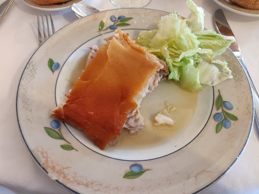 Read moreAnyone who is traveling to Spain knows they will be eating well their entire trip. This held true for our quick day trip to Segovia. We had a fabulous experience at this restaurant for lunch! Located in the heart of the city, we were pleasantly greeted by a welcoming hostess and were seated on a terrace that has a beautiful overlook. Our waiter proved great recommendations for foods that we would enjoy and we were not disappointed! The judiones had large pieces of extremely flavorful chorizo and morcilla and was very delicious, even on a warm summer day. The star of the show was the cochinillo! The skin was so crispy and delectable and the meat fell right off the bone. Make sure to save the juice to dip your bread in! In terms of drinks, the house wine paired well with the meal and the coffee was a great finish to the meal. Don’t forget to save room for the ponche segoviano postre! To top off our experience, the quick service was great for anyone who shows up to the restaurant hungry and ready to eat. We would not hesitate to recommend this great place and wish to...