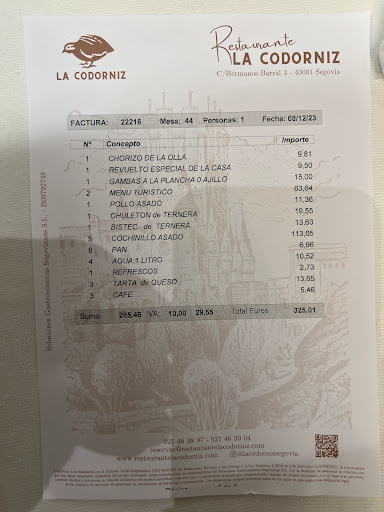 Read moreLlevamos yendo al restaurante desde hace más de 20 años cada vez que visitamos Segovia. Hace un par de años publiqué que tienen una carta muy completa y menú con tres platos de primero para elegir y de segundo, el cochinillo por excelencia. Entonces me pareció que estaba todo muy bien elaborado y lo recomendé. Hoy (19/10/24) muchas cosas parecen haber cambiado. La atención del personal ha sido la esperada, pero el precio y la comida NO. 38€ por el menú es muy caro, es verdad que hay cantidad en el plato, pero ¿y la calidad? No nos ha gustado, la sopa castellana no estaba como otras veces, ni de sabor ni de textura, más turbia, más grasienta, sin jamón y con tropezones poco gustosos, en definitiva menos sopa castellana. El cochinillo estaba soso, puede que le faltase cocción o estaba un poco arrebatada la carne y aunque le acompañase bien la salsa, no estaba tan bueno como acostumbrábamos a comerlo. Los postres...pues tampoco! La tarta de queso fatal, estaba apelmazada y nada parecía indicar que fuera una tarta de queso y lo único que se salva es el ponche segoviano, esponjoso y rico, la verdad. El comedor estaba bastante oscuro y había un auténtico jaleo de camareros. Estaba lleno, eso sí. He leído que han cambiado de dueños hará un año... qué pena porque hoy por hoy ha dejado de ser un lugar de referencia para nosotros, en un futuro buscaremos otro...