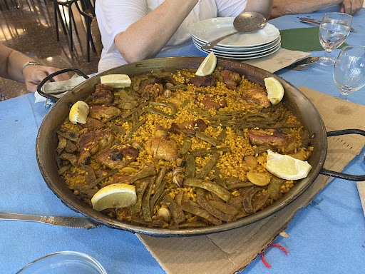 It was a wonderful experience from all perspectives. La Garrofera is a really basic but nice restaurant where you can find the typical food a Valencian family would enjoy in a typical weekend with friends and family. Mains are Paella (the real one) and BBQed meats and sausages. Sides can be "patatas bravas", artichokes, salads... Everything delicious. The waitress was really nice and helpful. In order to cook the Paellas and BBQs they use fires fed with orange tree wood which is kind of the right thing to do when cooking paella. Really...
