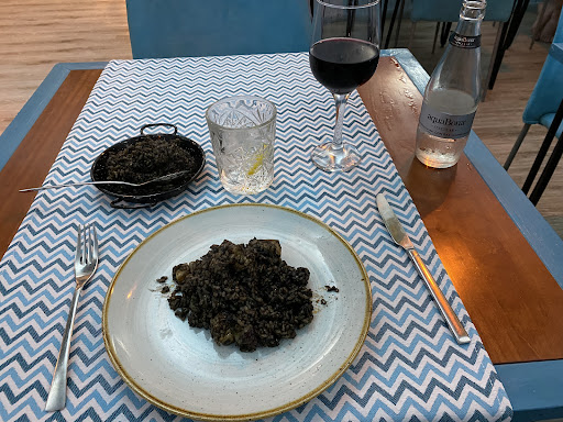Die Paella jedoch war der Reinfall schlechthin. Der Reis viel zu trocken und geschmacklich keine Spur von Fisch. Schade. Die Portion für zwei Personen zu klein und die Paella war lauwarm. Wir hatten das Gefühl das sie nicht frisch zubereitet vorbereitet wurde. Das würde auch erklären warum die Service Kraft die Pfanne mir bloßen Händen an unserm Tisch zeigt.