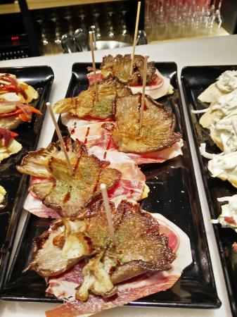 Sandwiches riquísimos, tortilla extraordinaria, anchoas rebozadas, gildas, ensaladillas, piparras, ... todo muy, muy bueno. Otro tanto se puede decir de sus café y bollería.