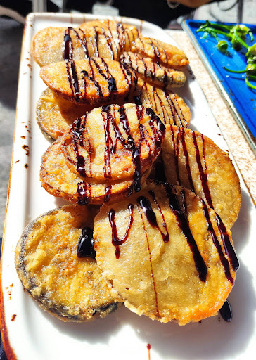 Probably the best restaurant in the whole region ! 100% the best in Setenil.. Let's start with something very important if you want to enjoy your meal here or anywhere else in this pretty village : come early. Get there by 13.00 – 13.30 and put your name on a waiting list. You can reserve some places by phone, but not this one. Too good, too busy. The waiter will tell you approximately how long you have to wait. In our case 30 minutes. Use that time to stroll around the village center. There are only two roads with caves, divided by a river. The restaurant is on one of these cave roads, so everything is at hand and time will fly. When you get back there is a good chance that there are still one or two before you. Get a drink or simply wait, taking in the scenery. Once you're seated get your order going asap, either because you have scanned the QR code before or because you have already chosen from the menu on their web. If you are unsure, ask the staff for recommendations or tell them any special requirements – we are used to Ribera de Duero, but were told that "la gallinita ciega" was far superior to their Ribera house wine...and so it was. In fact so much that we have now ordered a box of it. Virtually unknown wine with an excellent taste and cheap as chips ! As for the food, they have really tasty vegan options..as well as food for "normal" people (yes, I am the vegan in the family..). The food is good quality and served quickly. The staff are fast, efficient and very friendly. This is the number one restaurant in the village and it is...