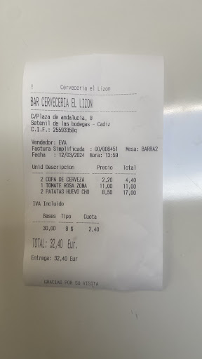 Total: 30,10€ y salimos con hambre. Es recomendable? No creo, pero animo al establecimiento a mejorar esos puntos.