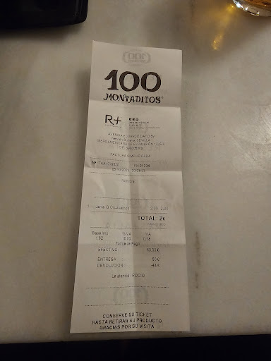 Read moreNunca mas!!!! Y eso que soy muy fan de la cadena Cien Montaditos ....he estado en muchos y aunque obviamente no se trata de cominda gourmet, simepre me han atendido bien y la comida es buena y barata. Anteayer iba a ver una pelicula en el cine Nervion y con mucho tiempo de sobra (mas de media hora) fui al 100 Montaditos de Eduardo Dato. No habia nadie hacienda cola, nadie, a pesar de lo cual la chica del mostrador me dijo que me esperase simplemente porque estaba charlando con una de las chicas de la cocina. Finalmente me toma nota del pedido y me siento. El restaurante estaba super sucio, bebidas derramadas en el suelo, las mesa vacias sin limpiar. Espero y espero, mientrastanto entra una familia y hacen su pedido y 5 minutos mas tarde tienen todo y eso a pesar de haber pedido comida caliente . Pasa casi mas de media hora y yo sin la comida, y como iba a empezar la pelicula me dirijo al lavabo. En seguida la chica del mostrador se me coloca delante y me dice que no puedo entrar porque no hay papel. Miro dentro y si hay papel pero me prohibio entrar fisicamente porque dice que primero lo tiene que colocar ella bien (habia tenido media hora para hacerlo pues solamente vino una familia a pedir comida durante todo el tiempo que espere!) Al final me tuve que marchar justo cuando finalmente me dicen que los 4 montaditos mios estaban listos. Muy malos modales el personal, el local sucio, y el servicio pesimo. A este sito no volvere a ir, una lastima porque en general esta cadena esta...